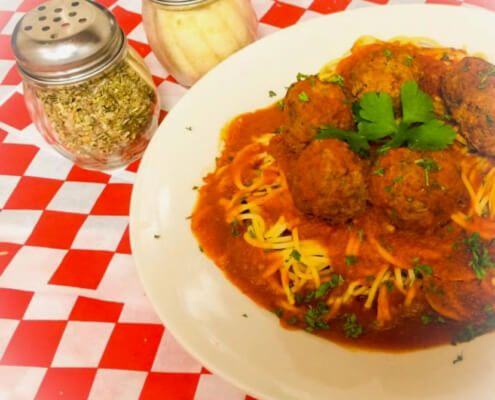 Add meatballs or meat sauce for an additional fee